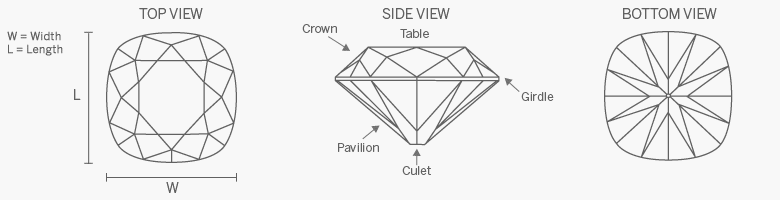The Coushion cut has been propular for more then a century. Coushion Cut Diamond have round corners and larger facets to increase their brilliance