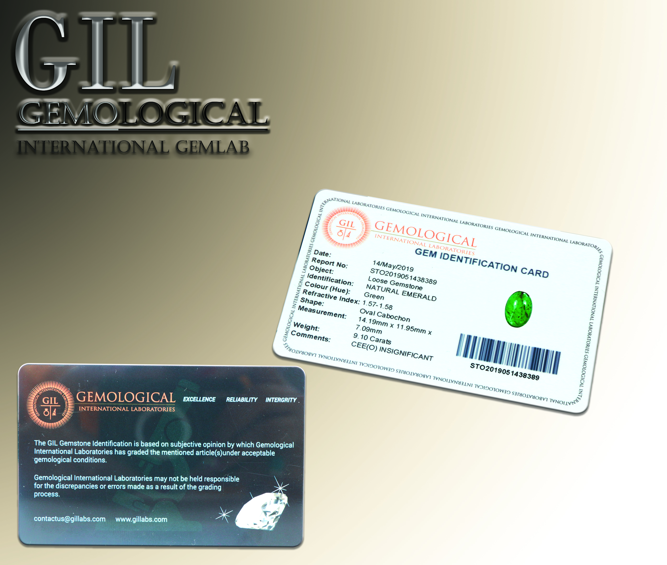 Certi-cards are another low-cost alternative. The Cert-card format and level of service does not quantify the clarity enhancement or identify the specific filler(s) that may have been used, nor is the country-of-origin a part of this level of service. For such information, the level of service must be upgraded to GILs Full Report. Size limitations do apply for specific gem varieties and additional testing requirements may also apply. The information provided on each Cert-card includes a report number, the gemstones identification, measurements, carat weight, shape and cutting style, and general color.