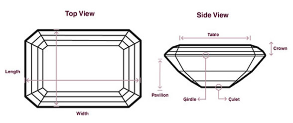 The emerald cut diamond shape is one of the best cut shapes around. The stone is rectangular and is referred to as a table cut diamond shape. The face of the stone resembles a table. The corners of the stone are truncated and the stone has steeped facets. Emerald cut diamonds that have intense color and clarity are your best choice.
