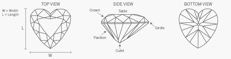 The heart cut diamond shapes are a variation of the pear diamond. The differences are that there exists a cleft in the middle of the diamonds widest point. This cleft is responsible for forming the heart shape. The heart shape of the diamond makes it a tough competitor.