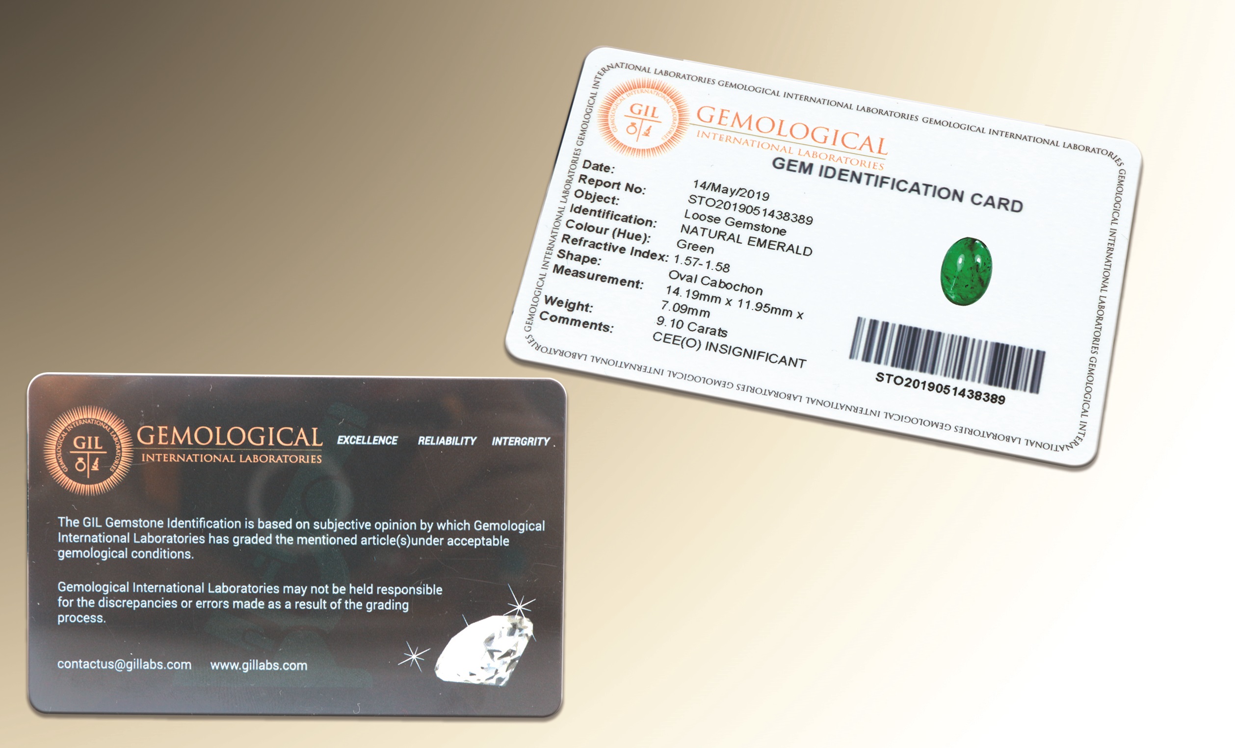 Certi-cards are another low-cost alternative. The Cert-card format and level of service does not quantify the clarity enhancement or identify the specific filler(s) that may have been used, nor is the country-of-origin a part of this level of service. For such information, the level of service must be upgraded to GILs Full Report. Size limitations do apply for specific gem varieties and additional testing requirements may also apply. The information provided on each Cert-card includes a report number, the gemstones identification, measurements, carat weight, shape and cutting style, and general color.