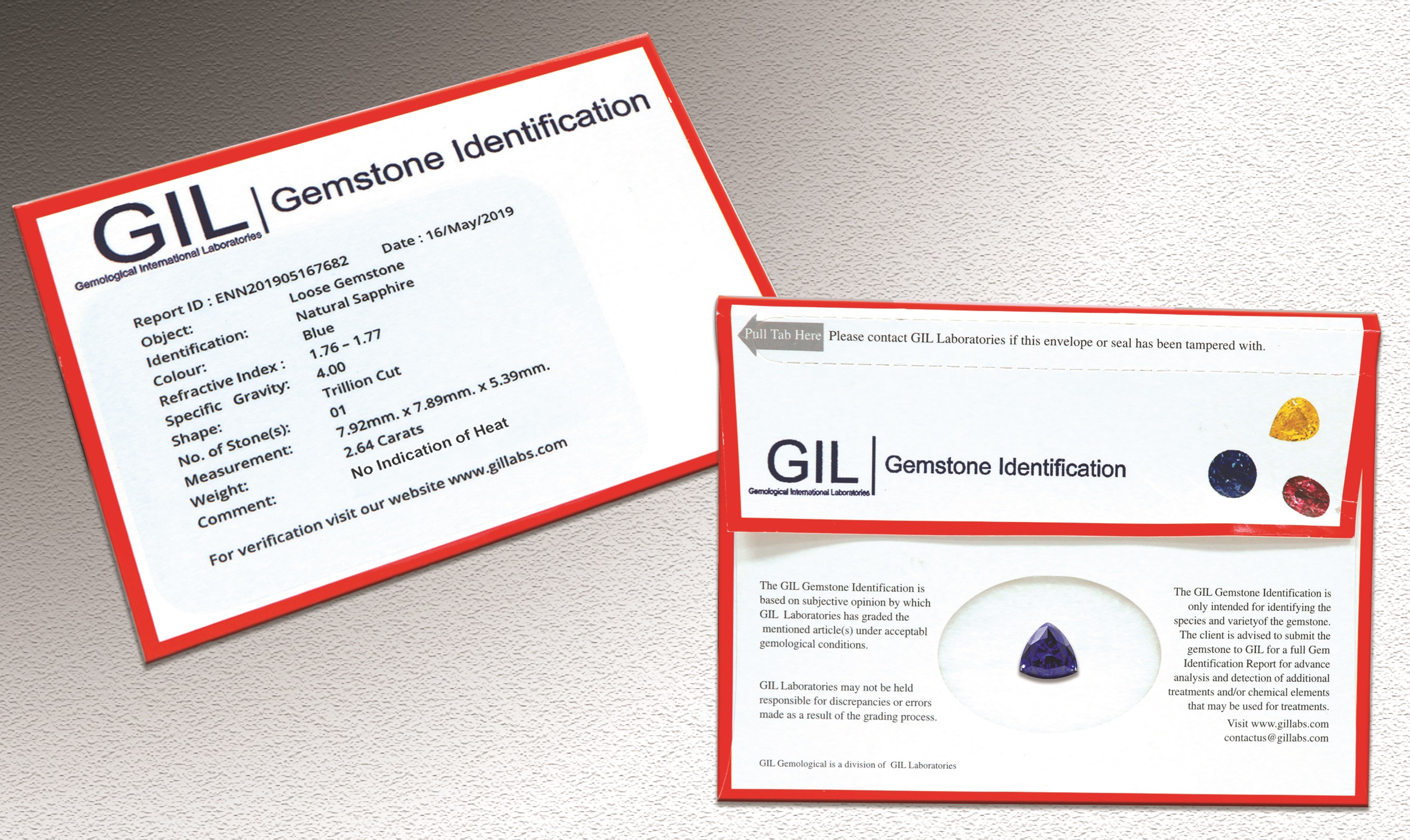 GIL Envelopes are low-cost alternative. It is very popular for precious and semi-precious stones. It is available in the size of 12 cm x 9 cm. It is easier to carry and it basically states the identity, Color, Refractive Index (RI), shape, measurement, and Weight of the stones.